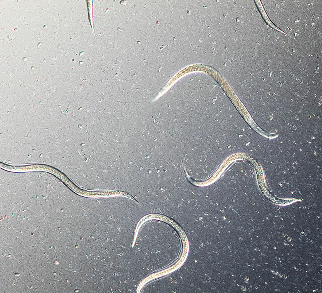 Nematodes, commonly referred to as roundworms, are a diverse group of worms belonging to the phylum Nematoda. Nematodes are characterized by their unsegmented, cylindrical bodies, and they come in a variety of sizes, ranging from microscopic to several inches in length. Nematodes play various roles in ecosystems. Some are free-living, feeding on organic matter in soil or water, and are essential for nutrient recycling. Others are called parasitic nematodes, infecting plants, insects, animals, or humans. There are about 25.000 named species, but estimated numbers of species are in the millions. Nematodes are also referred to as roundworms, threadworms, and eelworms.