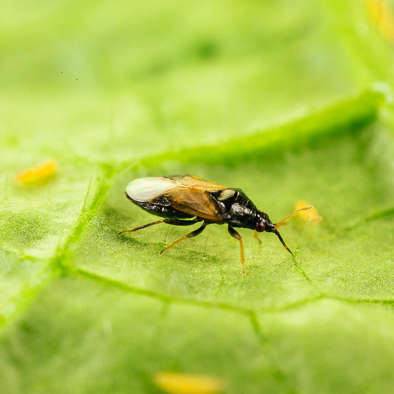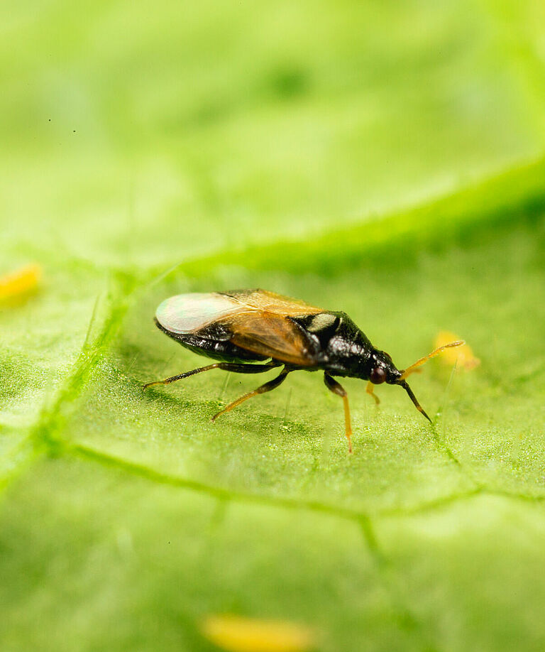 Orius insidiosus is a small but highly effective predatory bug for biological pest control of thrips. This beneficial insect has been widely utilized in integrated pest management (IPM) strategies in various agricultural and horticultural crops worldwide. Both adults and nymphs are voracious predators, capable of piercing and feeding on the soft bodies of their prey.