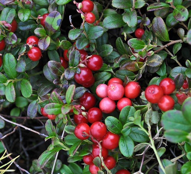 This species of cranberry belongs to the subgenus Oxycoccus and genus Vaccinium.