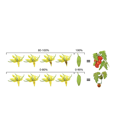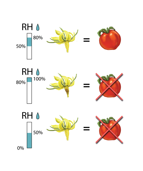 En dessous de 50 % de HR, la faculté germinative du pollen se réduit ce qui peut entraîner des problèmes au niveau de la fructification. Les bourdons continueront à récolter du pollen et des marques de morsure seront toujours visibles, mais plus aucun fruit se ne développera.