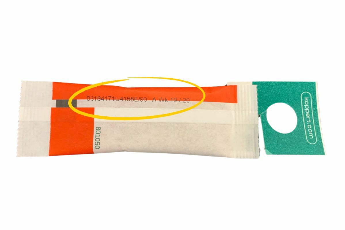 Il est possible de conserver les sachets à l'abri de la lumière et à une température de 14C pour une durée de 1 à 2 semaines à compter de la semaine indiquée sur l'emballage. Les deux semaines précises sont indiquées dans le code de lot. Par exemple, sur chaque sachet et sur la boîte dans laquelle les sachets sont conditionnés, vous verrez un code comme celui-ci :