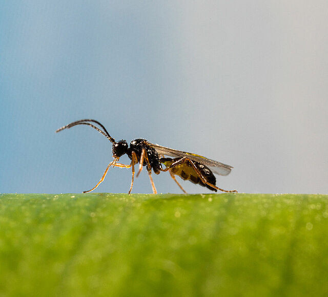 La guêpe parasitoïde Aphidius ervi est disponible en flacon (Ervipar).