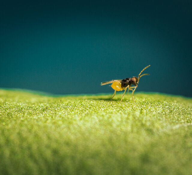 La guêpe parasitoïde Encarsia formosa est disponible chez Koppert sous le nom d'En-Strip.