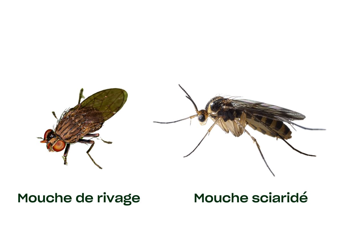 De nombreuses espèces de mouches sont nuisibles en agriculture, horticulture et culture de champignons. Les espèces qui peuvent causer des dégâts ou des nuisances sont notamment les petites mouches de la famille des Sciaridae (mouches sciarides) et des Ephydridae (mouches de rivage). Les larves de ces insectes vivent généralement sur des matières végétales en décomposition et se trouvent surtout dans le sol. La drosophile à ailes tachetées, Drosophila suzukii, est récemment devenue un important ravageur des petits fruits en Europe et en Amérique du Nord. Les mouches sciarides et les mouches de rivage sont principalement un problème dans les serres. Leurs larves vivent dans le sol et préfèrent les substrats humides qui sont riches en matières organiques. Bien qu’elles ne causent pas vraiment de dégâts directs aux végétaux, elles représentent souvent un problème de par leur grand nombre. Les larves de mouches de la famille des Keroplatidae(surtout Lyprauta sp.) peuvent provoquer des dégâts dans les orchidées en pot. La drosophile à ailes tachetées a récemment envahi l’Europe et l’Amérique où elle cause de graves dégâts à de nombreuses cultures de petits fruits.